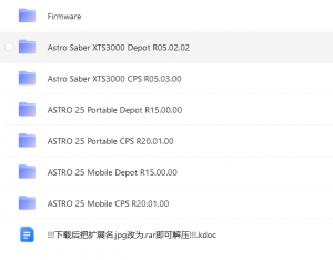 Firmware(升级固件包) Astro Saber XTS3000 Depot R05.02.02 (XTS3000 &数字军刀 刷机软件) Astro Saber XTS3000 CPS R05.03.00(XTS3000 &数字军刀 写频软件) ASTRO 25 Portable Depot R15.00.00(XTS2500&XTS5000 手台刷机软件) ASTRO 25 Portable CPS R20.01.00(XTS2500&XTS5000 手台写频软件) ASTRO 25 Mobile Depot R15.00.00(XTL5000 车台刷机软件) ASTRO 25 Mobile CPS R20.01.00(XTL5000 车台写频软件)